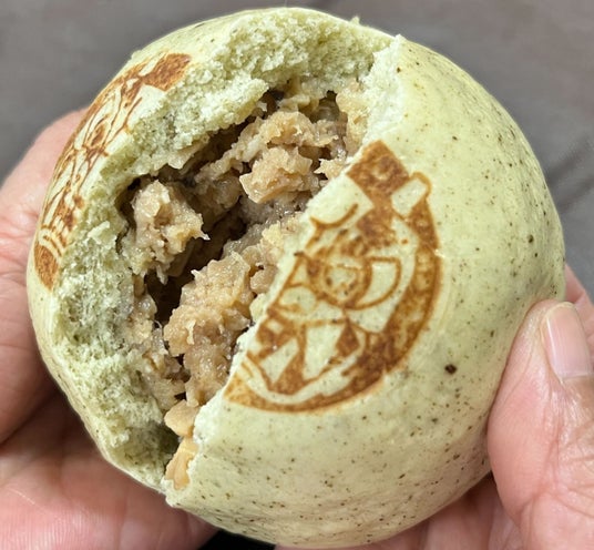 商品説明:スーパーフードとも呼ばれるギバサを肉まんの皮に練り込み、食べた後、口の中に磯の香りが広がる逸品です。