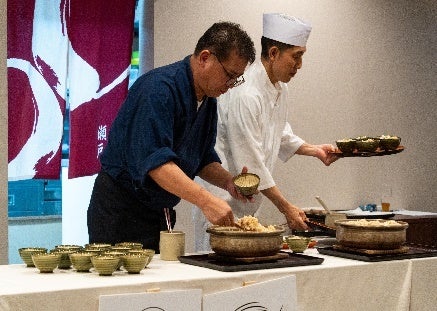 戸田豊総料理長が、日本料理の創意工夫と技術を活かして洗練されたコース料理を提供し、カワハギやハモを使った調理デモンストレーションも行っていただきました。