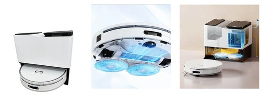 幅33cm高さ8.6cmと家庭用サイズながら、広範囲清掃能力を兼揃えた小型ロボット。吸引・水拭きに対応しており、特に水拭きは回転式モップと布モップの2種類を搭載しています。カーペットからフローリングまで幅広い床材に対応可能です。焼肉店での導入実績がある程で、油汚れなどのしつこい汚れにも対応できます。