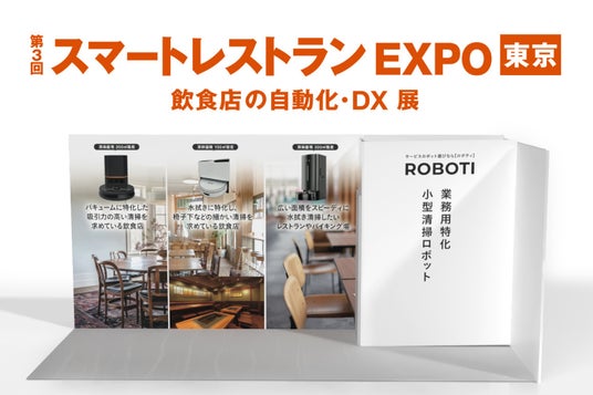 「スマートレストランEXPO」とは、飲食店における人手不足、自動化・業務効率化などの課題を解決するための調理ロボット、AI、POS、モバイルオーダー、集客支援などの製品・サービスが一堂に集結する専門展です。当社は今回、飲食店・レストランの人手不足を解決する業務用小型清掃ロボットブランド「ROBOTI(ロボティ)」を出展します。