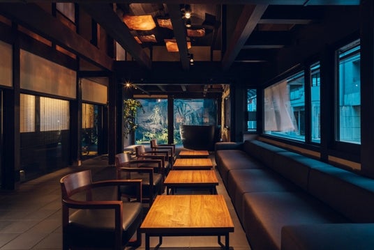 キンシ正宗の販売所を生まれ変わらせたホテル 「nol kyoto sanjo」ラウンジ