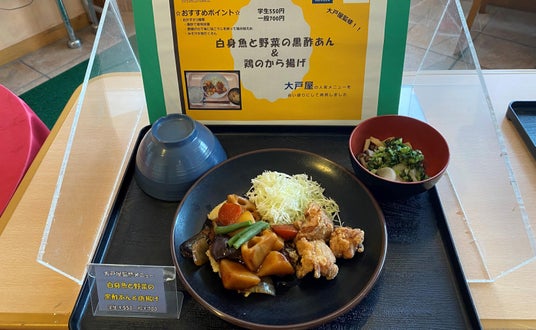大戸屋のブランドコンセプトである「健康的で美味しい食事」に基づき、栄養バランスの良いメニューが考案されました。大戸屋の人気メニュー「黒酢あん」を取り入れるなど、栄養学部ならではのアスリートへの配慮が反映されたメニューとなっています。