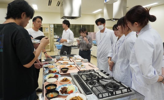 今回、卒業研究の一環として、運動部学生向けの学食メニューを開発しました。運動部学生へのアンケートやヒアリングで得た意見をもとに、高エネルギー・高タンパクの食材を使用し、主菜を2種類載せた合い盛り定食にすることでボリューム感のあるメニューを完成させました。提供当日は、学生のみならず教職員や一般のお客様にも来店いただき、メニュー開発に携わった私たちにとっても、とても嬉しくやりがいのある卒業研究となりました。