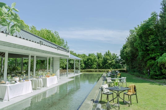リニューアルが進む服部緑地において、公園内レストランの建物躯体を再利用しながら魅力的な空間に一新することで、地域の賑わい創出とサステナブルな未来に貢献したい。そうした想いで2024年7月にオープンしたレストラン「sasa」。