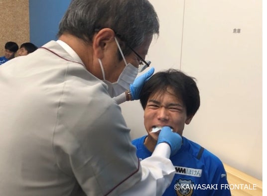 株式会社ロッテ(本社:東京都新宿区、代表取締役社長執行役員:中島英樹)は、スポーツにおける「噛むこと」の価値を発信する「噛むスポプロジェクト」の一環として、Jリーグ川崎フロンターレの育成組織であるアカデミーの選手へサッカーに重要な「噛むこと」の啓発を目的とした取り組みを、10月17日(水)に川崎フロンターレクラブ事務所、11月5日(月)にAnkerフロンタウン生田(ともに神奈川県川崎市)にて実施いたしました。当日は、東京歯科大学 口腔健康科学講座 スポーツ歯学研究室の武田友孝客員教授を招聘し、アカデミー選手、関係者にスポーツにおける「噛むこと」の大切さを説く口腔健康セミナーと咬合力と左右バランスを測る噛むチカラ測定を実施。その後、チームへトレーニングガムを提供しました。