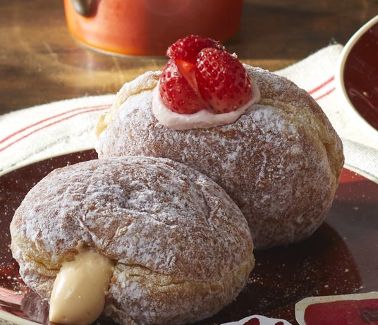 自家製生クリームと国産いちごの季節限定クリームドーナツです。