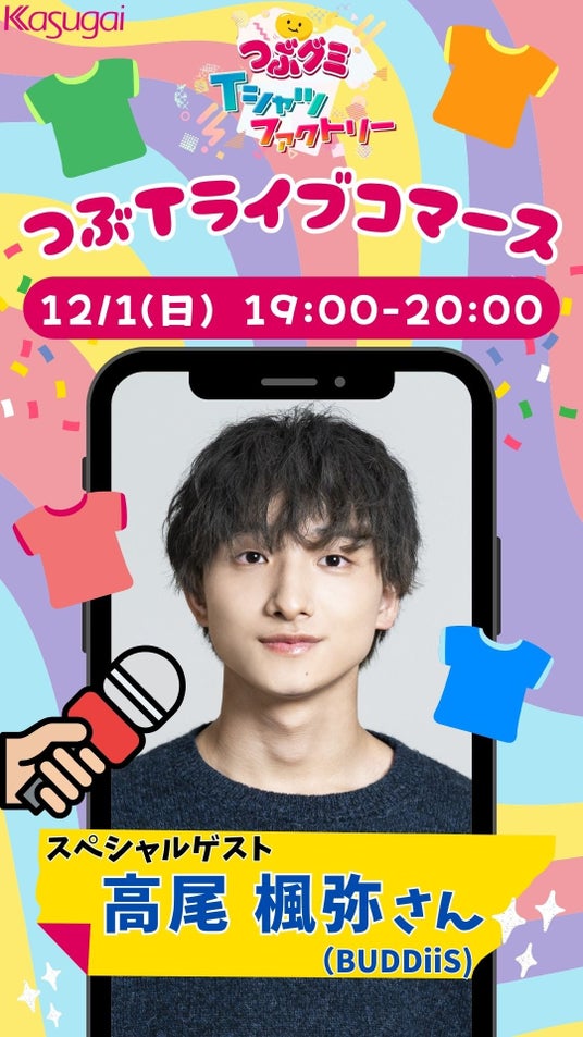 「つぶTライブコマース」では、ライブコマースサービス「Tig Live]を通して、日本グミ協会名誉会長の武者慶佑さんと日本グミ協会名誉会員でもあるBUDDiiSの高尾楓弥さんが、全国のグミ好きと交流しながら作りあげたつぶグミTシャツ(通称つぶT)をライブで紹介し、実際に着用しながら販売をいたします。