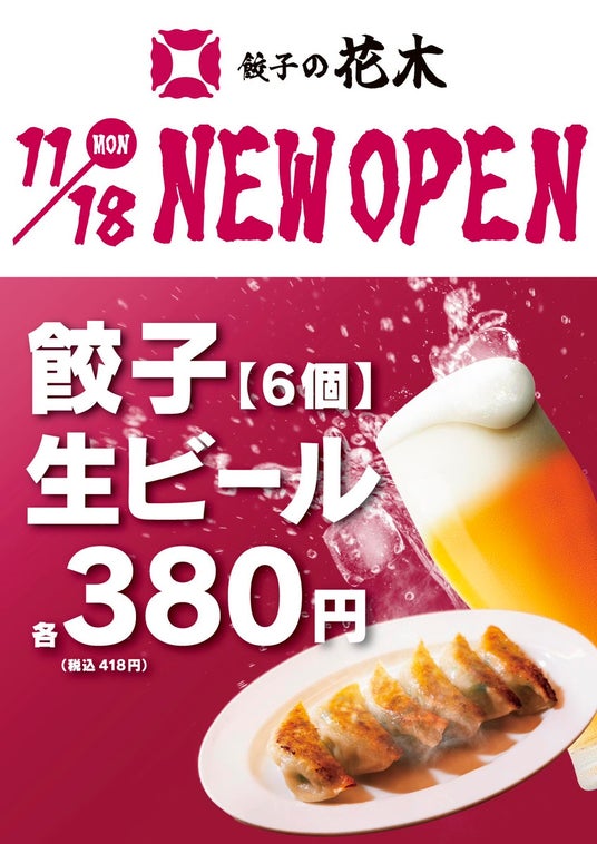 11月18日(月)、大井町の東口に餃子の美味しい激安大衆居酒屋『餃子の花木』がグランドオープン致します。