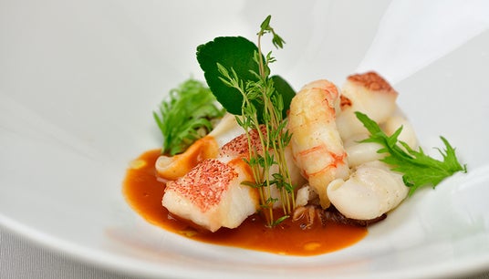 県産魚ミーバイと魚介のナージュ Our Farm産コブミカンのフュメ