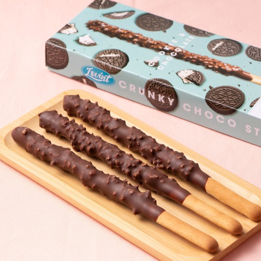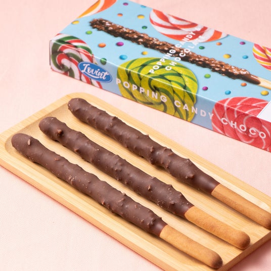ジャイアントサイズのビスケットスティックをたっぷりのチョコレートにディップし、アーモンド、ピーナッツ、クッキー、ポッピングキャンディーなどの多彩なトッピングを施した後、再びチョコレートで贅沢にコーティングしています。ザクザクとした食感に加え、口の中で弾けるようなポッピングキャンディーのプチプチ感が楽しめる、ユニークで楽しいチョコレートスティックです。
