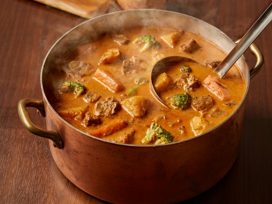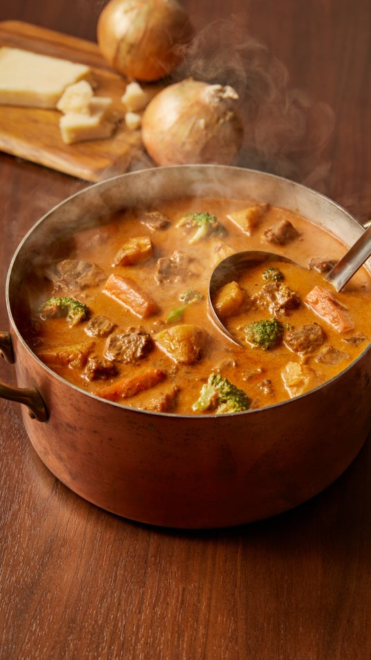 「ブラウン」は、じっくり炒めた玉葱の色。その深い味わいは、スープづくりの知恵と手間隙 (てまひま)が引き出したものです。香味野菜と柔らかな牛肉の濃厚な旨味にミルクとチーズが溶け合うこのシチューは、スープ専門店ならではのこだわりが詰まった一品です。