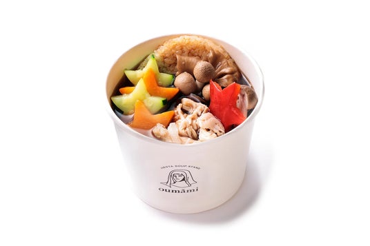 数種類の香り高いキノコを使用したoumami1番人気「黒旨だし」のスープです。鶏肉とごはんでボリューム感もバッチリ!栄養たっぷりスープでパワーアップしてください。