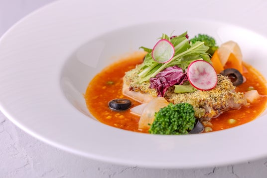 自然に囲まれた淡路島の温暖な気候で生き生きと健やかに育てられ引き締まった身と脂肪バランスが程よいモモ肉の上にサクサク食感の香草パン粉のせて焼き上げました。爽やかなカチャトーラソースでどうぞ。