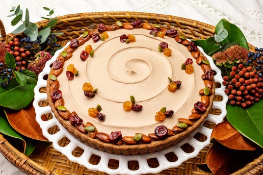 ほろ苦いココア風味のタルトにジャンドゥーヤと2種類のチョコクリームを重ね、アーモンドとドライフルーツを飾りました。濃厚なチョコクリームとナッツの食感が好相性のタルトです。