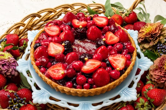 まろやかな酸味を感じるコクのあるクリームのタルトにシナモンをふり、6種のベリーをふんだんに飾った甘酸っぱいタルトです。リースのように飾られたフルーツと、ゴールドのシリアルがクリスマスにぴったりです。