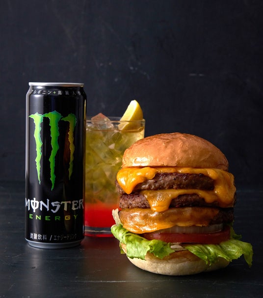 また、ビックサイズの「チーズチーズチーズ!バーガー」と一緒にMONSTER ENERGY BEVERAGEを飲んだらパワーみなぎること間違いなし!