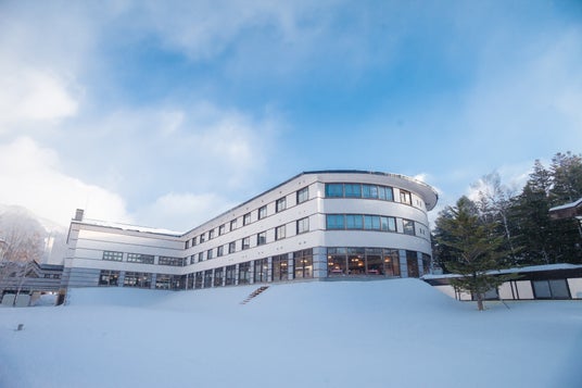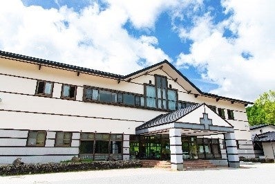 グリーン期の休暇村乗鞍高原外観とアウトドアリビング