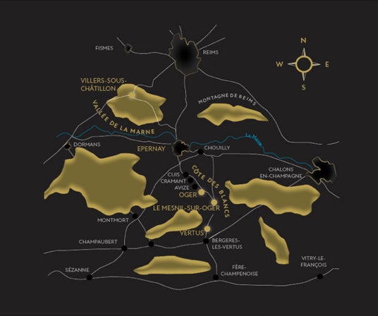 使用されるブドウは、コート・デ・ブラン地区のシャルドネ(繊細でフレッシュな風味)と、ヴァレ・ド・ラ・マルヌ地区のピノノワールとピノムニエ(力強さと複雑な味わい)。それぞれの地域が持つ個性を最大限に活かしたバランスが特徴です。