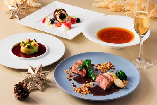 ホテル日航立川 東京(東京都立川市/総支配人 伊藤寿章)のレストラン「All Day Dining 紗灯」(1階)では、ホテル開業9周年を記念した「周年記念特別メニュー」を2024年10月~12月に提供しています。12月20日(金)~12月25日(水)の期間中は、クリスマスをイメージした華やかなコースメニューが6日間限定で登場します。