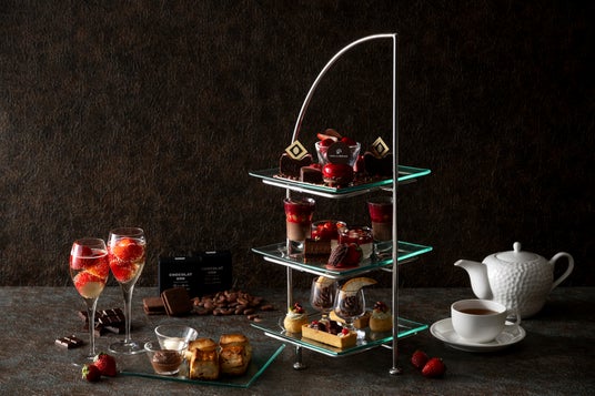 ホテルの外観を象ったスタンドで供される、ほかにはない極上のいちごとチョコレートのアフタヌーンティーを、横浜の海が一望できるラウンジで存分にご堪能ください。