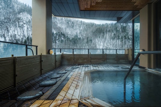 初代北海道庁長官・岩村通俊によって名づけられた「鹿の湯」は、定山渓で唯一・固有の名を持つまさに名湯。定山渓の一等地・豊平川沿いの大浴場真下から湧き出続ける名湯を、3つの異なる浴槽で堪能できる。夜には渓流がライトアップされ、幻想的な風景が広がります。