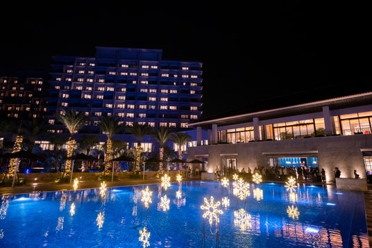 初日となる11月16日(土)には特別招待ゲストが集まり、ホテル初となるイルミネーション点灯式が開催されました。当日は、ご宿泊者と2,000名以上のご応募の中から当選された外来のお客様200名含め、延べ800名のお客様に沖縄の新たなエンターテインメントを体感していただきました。