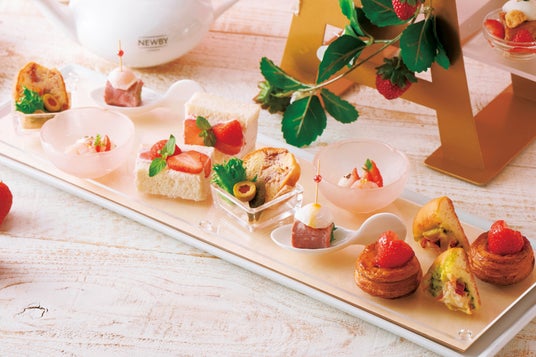 瑞々しく甘酸っぱい、いちごの魅力を存分に表現した、華やかなアフタヌーンティーが登場。チョコレートのタルト生地で味わう“あまおうタルト”をはじめ、とちおとめを使用した“いちごのプリンアラモード”、“いちごと「伊達の純粋赤豚」ハムのケークサレ”などのスイーツやセイボリーがスタンドを彩ります。この時期だけのホテルオリジナルブレンドの紅茶とともに、太陽の光が差し込み開放感あふれるロビーラウンジで優雅なひとときをお楽しみください。