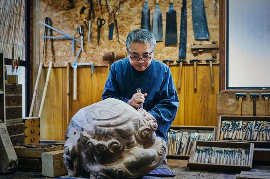以来、沖縄の首里城の彫刻・東京築地の大獅子・全国獅子頭修復・加賀獅子頭の制作など