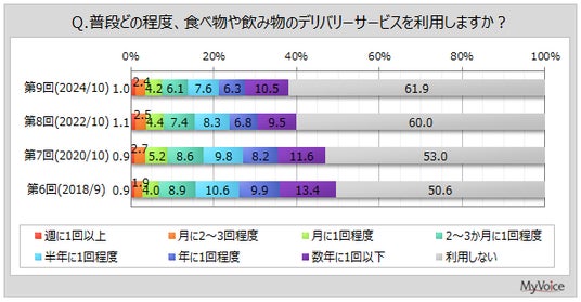 マイボイスコム株式会社(東京都千代田区、代表取締役社長:高井和久)は、9回目となる『デリバリー』に関するインターネット調査を2024年10月1日~7日に実施しました。