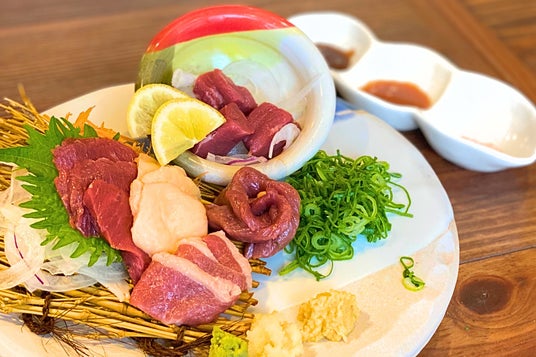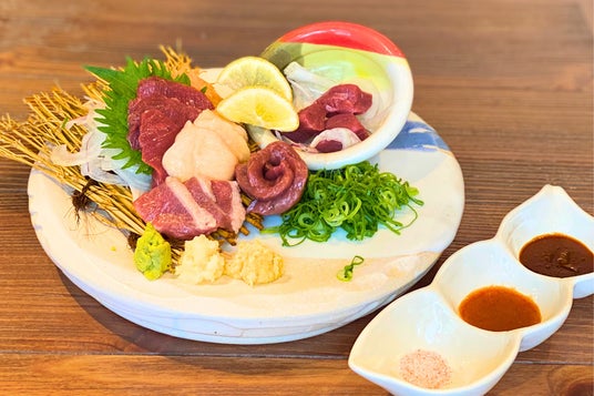 対象となる馬刺し5種盛りは、定番部位から希少部位まで入った贅沢な一皿となっております。5種類それぞれの部位ごとに異なる食感や風味が広がり、馬肉の深い旨味を一度にお楽しみいただけるのが最大の特徴です。お得なこの機会にぜひ、お楽しみください。