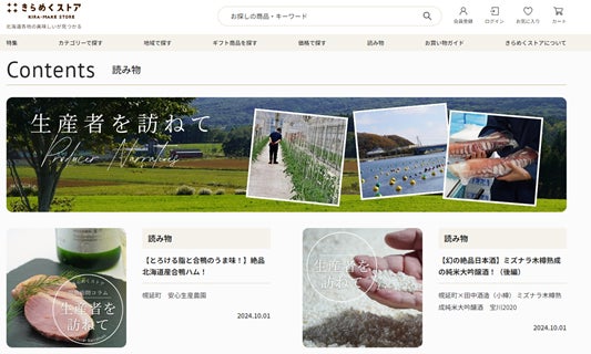 商品に関連した読み物コンテンツを充実させ、魅力あるたしかな商品を様々な情報とともにお届けいたします。商品誕生のストーリーや北海道内の事業者さまの想い、こだわりはもちろん、北海道各地のお役立ち情報もお楽しみいただけます。