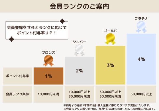 購入額に応じて会員ランクがアップする制度を新たに導入いたしました。