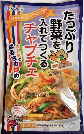 たっぷりの炒めた野菜とはるさめを 3 分煮込み、添付の風味豊かな液体ソースをからめるだけで手軽においしいチャプチェがお召し上がりいただけます。