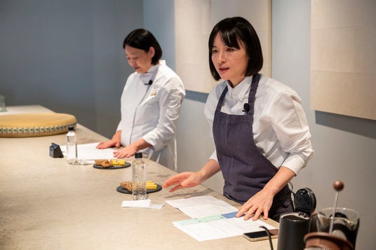 講師はチーズの専門家である日本チーズアートフロマジェ協会副理事長の村瀬美幸氏と珈琲の専門家である小川珈琲株式会社 総合開発部 店舗開発課 チーフバリスタの吉川寿子氏。
