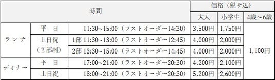 - 電話 082-262-1132(レストラン総合案内 10:00~19:00)