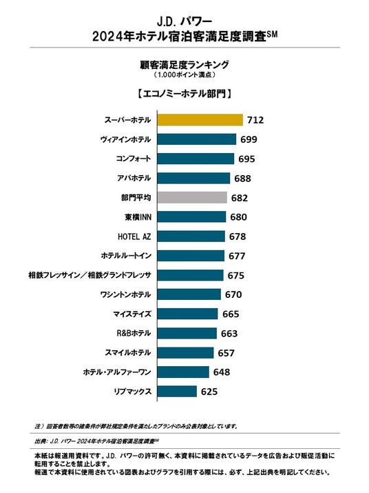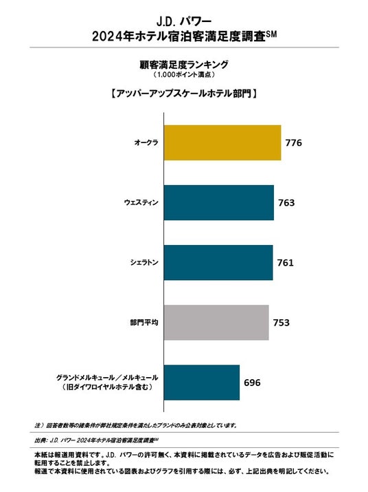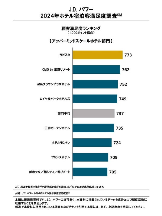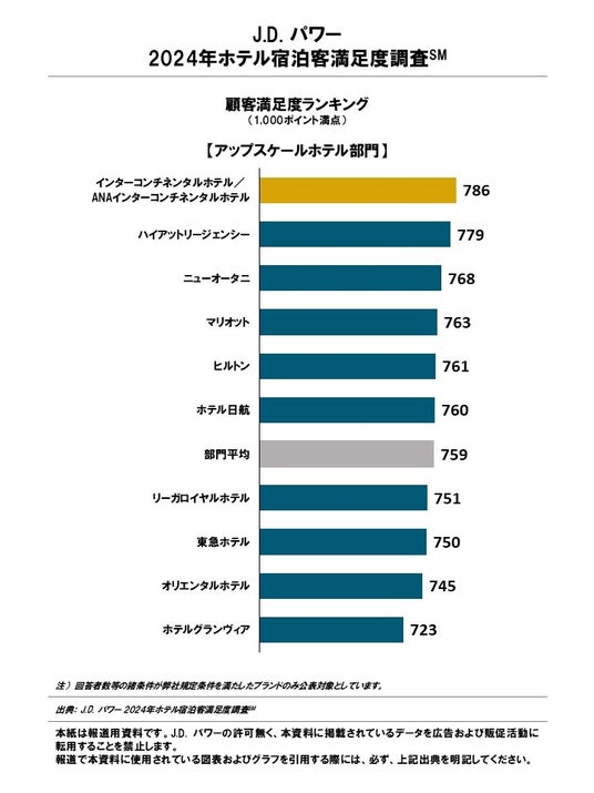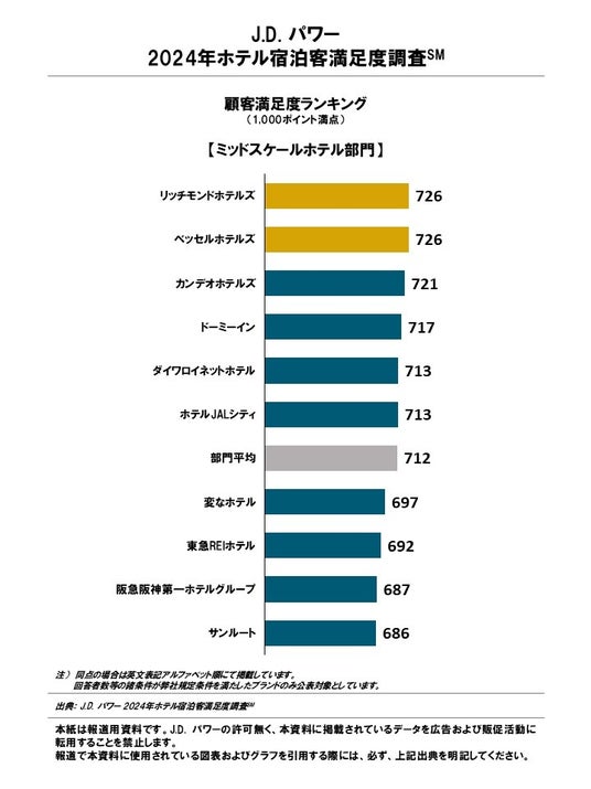 J.D. パワー 2024年ホテル宿泊客満足度満足度No.1を発表