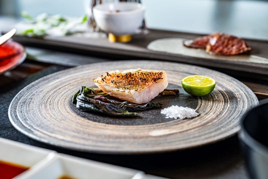 のどぐろの塩焼に加賀野菜の金時草 治部煮