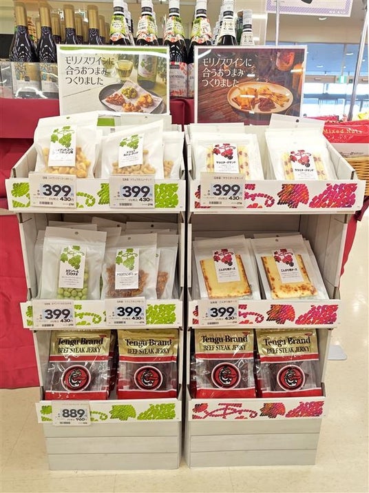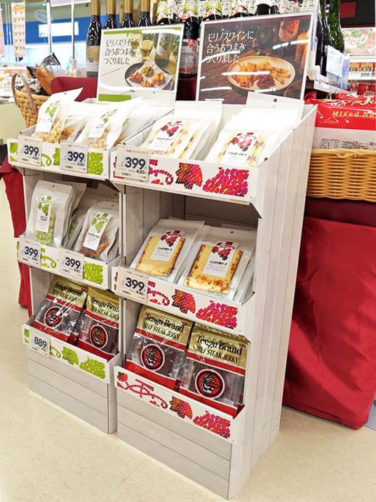 ボジョレーヌーヴォー売場のおつまみ展開用什器