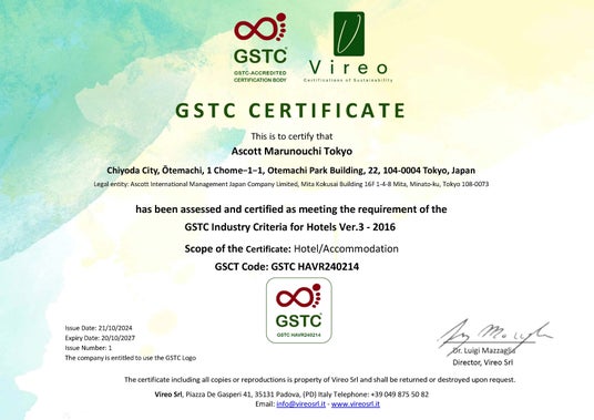 シンガポールに拠点を置き、世界40ヵ国230都市以上で約950のプロパティを展開するホスピタリティグループThe Ascott Limited(アスコット)(日本での運営会社:株式会社アスコットジャパン/東京都港区、代表取締役社長:ボーダー・クリスチャン)は、現在日本で展開している21軒のホテル&サービスレジデンスにおいて、アスコットのサステナビリティ・プログラムである「Ascott Cares(アスコットケアーズ)」のもと、「Community(コミュニティ)」、「Alliance(アライアンス)」、「Respect(リスペクト)」「Environment(環境)」「Supply Chain(サプライチェーン)」の5つの柱に焦点を当て、年間を通じさまざまな持続可能な取り組みを行っています。そしてこのたび、アスコットの国内5施設(アスコット丸の内東京、シタディーン新宿東京、シタディーンセントラル新宿東京、シタディーンなんば大阪、lyf(ライフ)銀座東京)において、日本初となるグローバル・サステナブル・ツーリズム協議会(GSTC(R))(The Global Sustainable Tourism Council (GSTC(R)))による、持続可能な旅行と観光のためのグローバルスタンダードである「GSTCクライテリア(基準)認証」を取得しました。日本国内におけるホスピタリティオペレーター(宿泊施設)としての認証取得はアスコットが初めてとなります。
