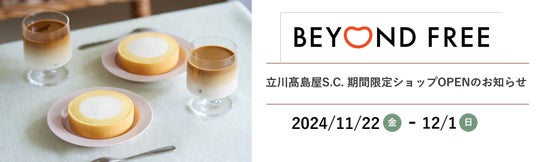 テーブルマーク株式会社(本社:東京都中央区、代表取締役社長:松田要輔)の展開するBEYOND FREE(ビヨンドフリー)は、2024年11月22日(金)~12月1日(日)の期間限定で立川高島屋S.C. 1階特設会場にて、植物由来の原材料で作った商品を販売いたします。