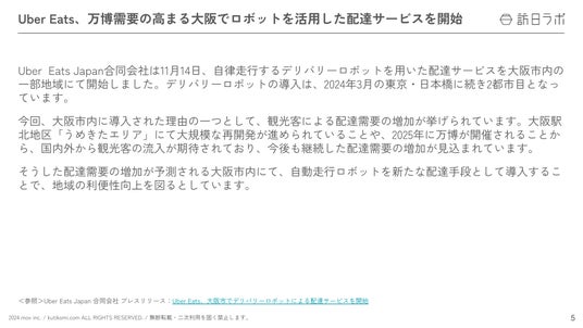 - Uber Eats、万博需要の高まる大阪でロボットを活用した配達サービスを開始