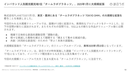 - インバウンド人気観光観光地1位「チームラボプラネッツ」、2025年1月に大規模拡張