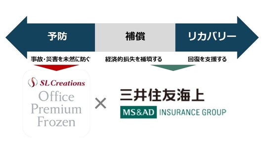 常備型社食サービス“Office Premium Frozen(オフィスプレミアムフローズン)”を展開する株式会社SL Creations(本社:東京都大田区羽田、代表取締役社長:佐藤健)は、三井住友海上火災保険株式会社(本社:東京都千代田区、代表取締役社長:舩曵真一郎、以下「三井住友海上」)との業務提携を開始しました。三井住友海上が提供している『補償前後のソリューション』のラインナップのひとつとして、健康起因事故対策や人材不足対策などの課題解決を目的に展開をしてまいります。