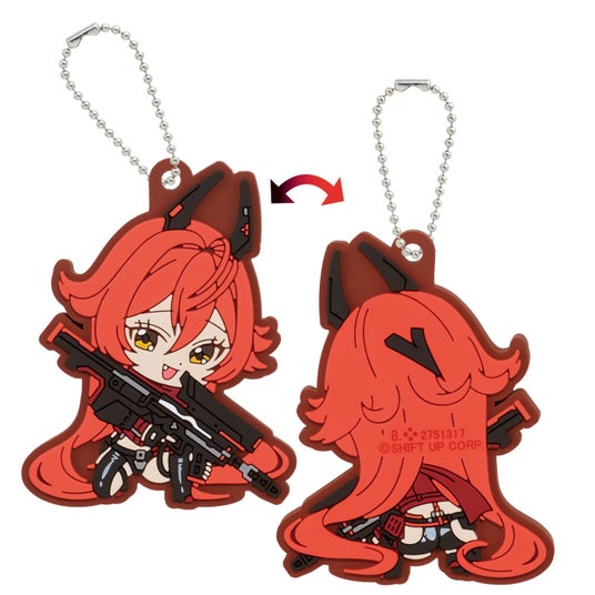 背中で魅せるガンガールRPG『勝利の女神:NIKKE』より後ろ姿も楽しめるリバーシブル仕様のラバーマスコットが登場!この商品のために描き起こしたデフォルメイラストを使用しています。第2弾の今回は全8種にパワーアップ!
