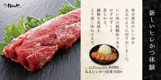 株式会社松屋フーズ(本社:東京都武蔵野市、代表取締役社長:瓦葺 一利)では、とんかつ専門店の「松のや」におきまして、2024年11月27日(水)午後3時より、「丸太ヒレかつ」を発売いたします。