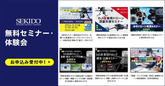 セキドでは、より多くの方にドローンを使った撮影や業務効率の改善を実現していただくため、ドローンや関連ソリューションをご紹介する無料セミナーやイベントを定期的に開催しております。今後もオンラインや全国各地での開催を予定しておりますので、ご興味をお持ちのイベントにはぜひお気軽にご参加ください。