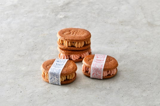なめらかでコクのあるバタークリームと、サブレ生地が奏でる美しい調和。フレーバーはやさしい甘さの「メープル」、甘酸っぱくまろやかな「フランボワーズ」をご用意。