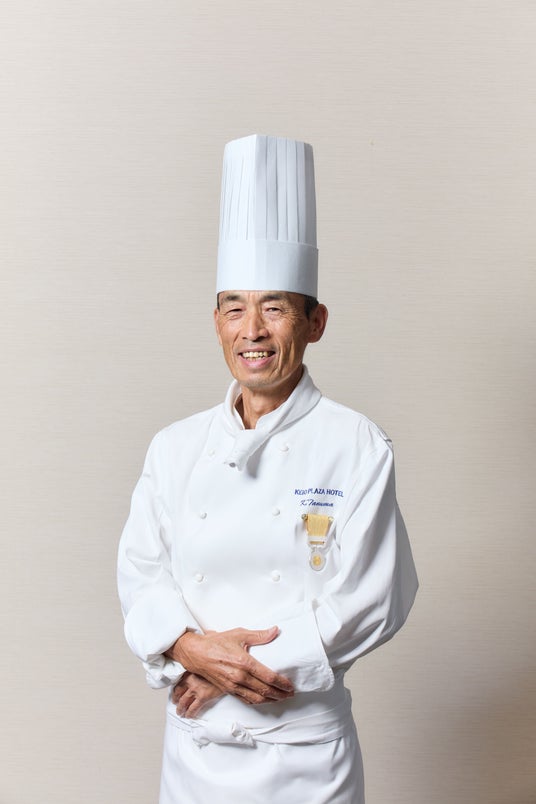 田沼 健吉は1973年に入社し、長きにわたり、当ホテルを支えるメインキッチンや冷たい料理を専門に作るガデマンジャーなど多数の調理現場において洋食調理のプロフェッショナルとして活躍してまいりました。2002年以降は、ガデマンジャーセクションシェフ、セントラルキッチンセクションシェフを歴任し、これまでの洋食調理の現場で培った卓越した技術と知識を活かし、鮮やかに彩られた料理で京王プラザホテルのパーティー会場を一層引き立てるという洋食冷製料理の統括者として重責を果たしてまいりました。
