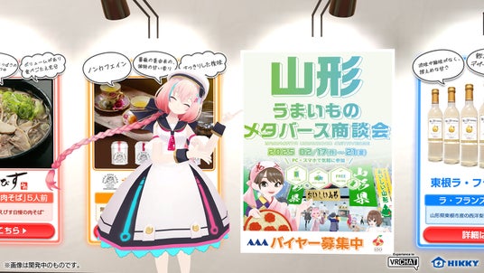 2025年2月下旬には、HIKKY独自のメタバース開発サービスVket Cloud(https://cloud.vket.com/ )で制作された、URLクリックのみで気軽にアクセスできるWebメタバース会場にて、展示会出展事業者と参加を希望するバイヤーがメタバース上で商談会を実施する「山形のうまいものメタバース商談会」を開催します。現在、参加バイヤーを募集中です。