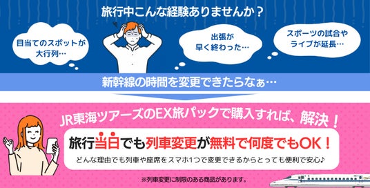 ★乗車直前まで新幹線の時間変更が無料で何度でも可能なのは、EX旅パックだけ!